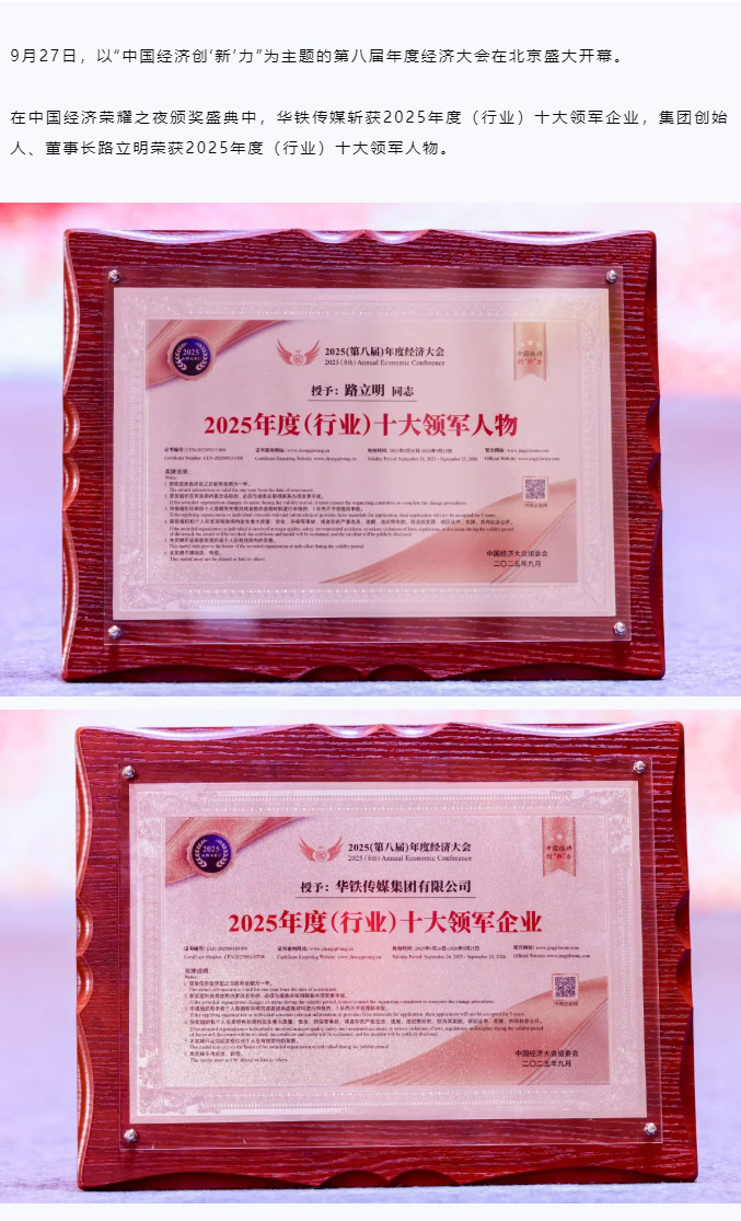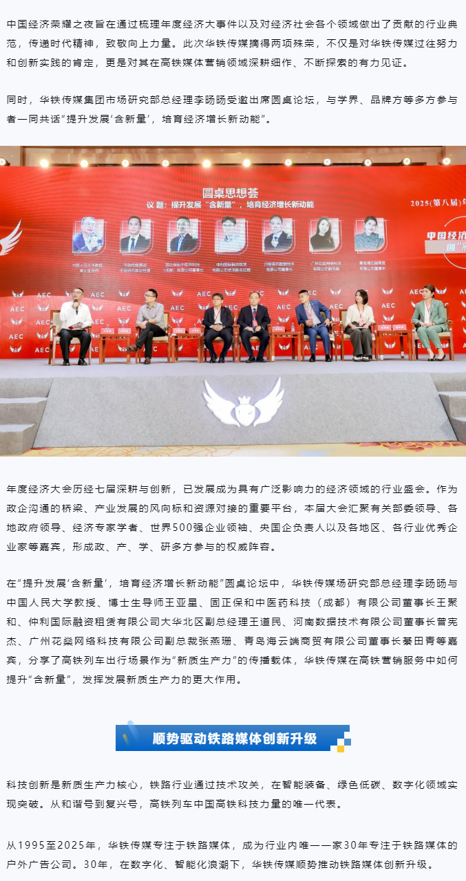 华铁传媒受邀出席第八届年度经济大会,斩获两项行业大奖!