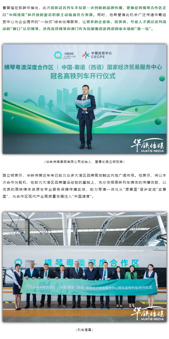 “提速”启程! 横琴与中葡经贸中心高铁冠名列车首发