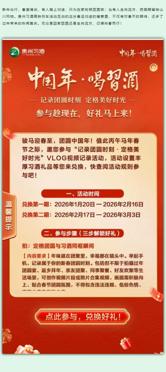 中国年 喝习酒 | 向春而行,习酒高铁列车互动活动温暖旅客归途